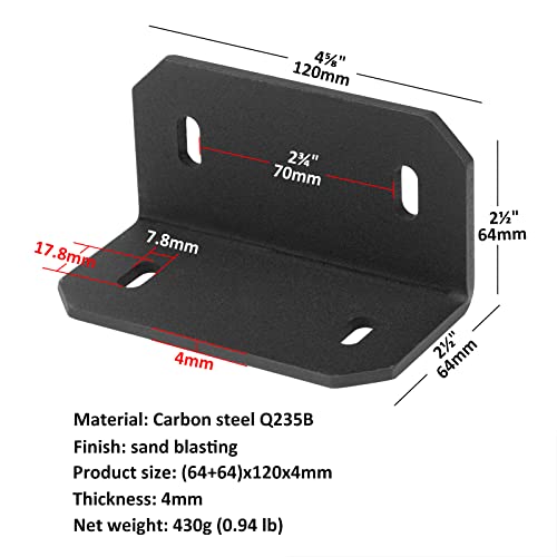 4 supporti angolari neri a L, (64 + 64) x 120 mm, 4 mm di spessore 90 gradi, barra angolare regolabile a forma di L con fessura