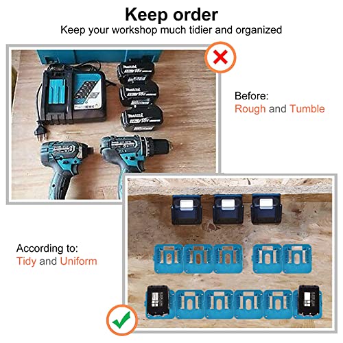 ✅ Portatile: 6 supporti da parete per batteria con 12 viti, peso solo 38 g per supporto, molto facili da trasportare e installare. Supporto per batteria Makita per il fissaggio a parete, banco da lavoro, garage, officina, veicolo da lavoro, sopra la testa.