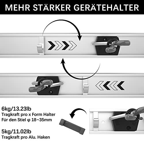 3-H Supporti per Dispositivi 2 * 43cm y 1 * 90cm, Supporto per Attrezzi da Giardino in Alluminio con 10 Porta Scope Parete Portautensili con Guida include 13 Staffe e 16 Ganci-Grigio