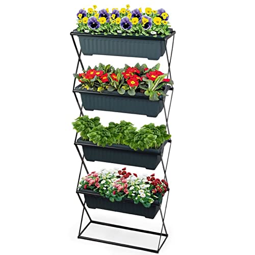 Supporti per fioriere, incl.4 vasi rettangolari - supporto per vasi da fiori rettangolari, per balcone e giardino - portavasi per fiori