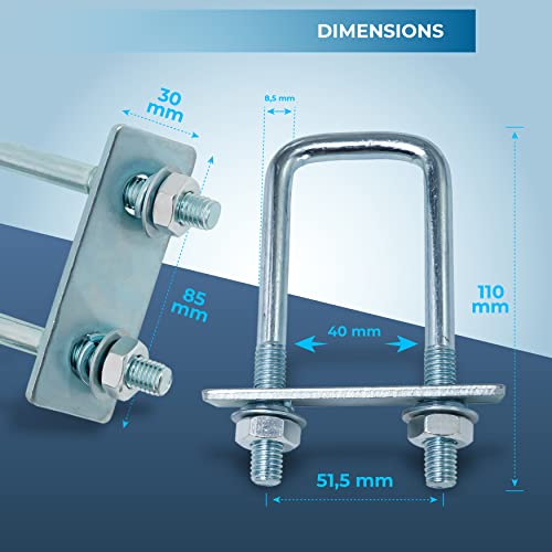 Set di 2 supporti a U, 110 x 40 mm, set di fissaggio completo per camion, scatola in alluminio, cassetta degli attrezzi, scatola degli attrezzi, scatola degli attrezzi, ecc.