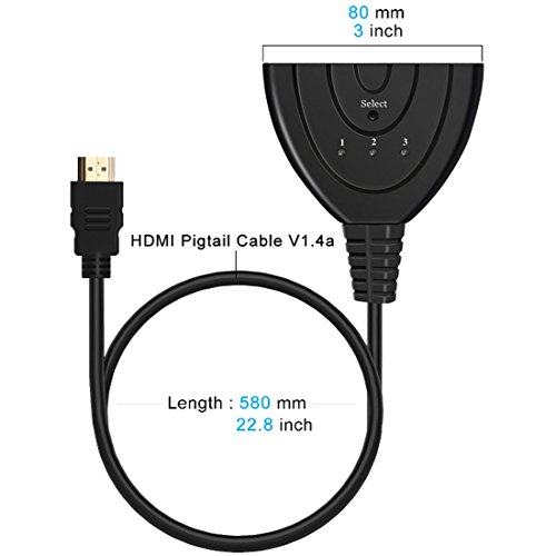 Supporti Full HD 1080p, 3D - HDMI Switch con hdmi cavo, 3-Port HDMI commutatore| 3 x IN / 1 x OUT | Dolby True HD | Switcher | Splitter per TV, Blu-Ray, cable box, PS3 / PS4, Xbox 360 / One