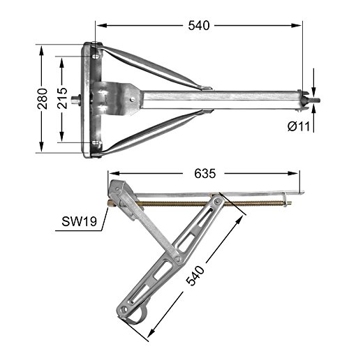 Caratteristiche del prodotto: supporti di svitamento con una portata totale di 600 kg - Realizzato in acciaio zincato di alta qualità - filetto per supporti rotanti, esagonale da 19 mm - Dimensioni: 53 x 28 cm - Altezza massima 50 cm