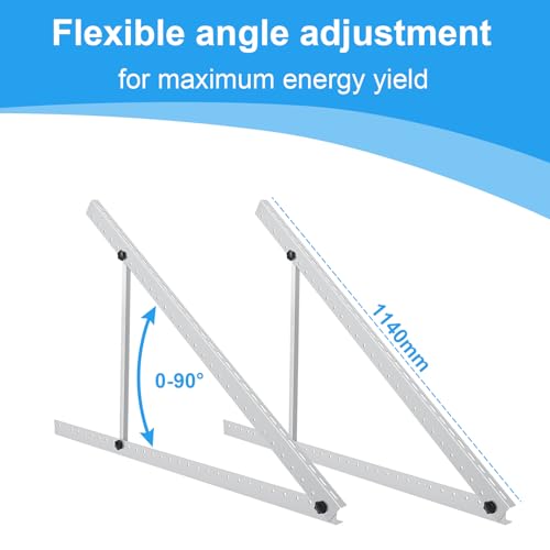 ◊ 【Versatile e regolabile】: il nostro supporto per pannello solare offre applicazioni versatili e può essere montato su pareti, tetti o terreno. Con un angolo di inclinazione regolabile da 0° a 60°, puoi allineare in modo ottimale i tuoi pannelli solari per massimizzare la produzione di energia.