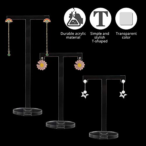 6 supporti per orecchini, espositori in acrilico per orecchini trasparenti da appendere, a forma di T, per porta gioielli (3 dimensioni)