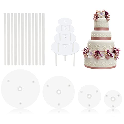 Supporti per Torta Piani, Diealles Shine 4 Base per Torta a Piani con 12 Pezzi Tasselli per Torte, Riutilizzabili Plastica Tavole per Dolci per Torta