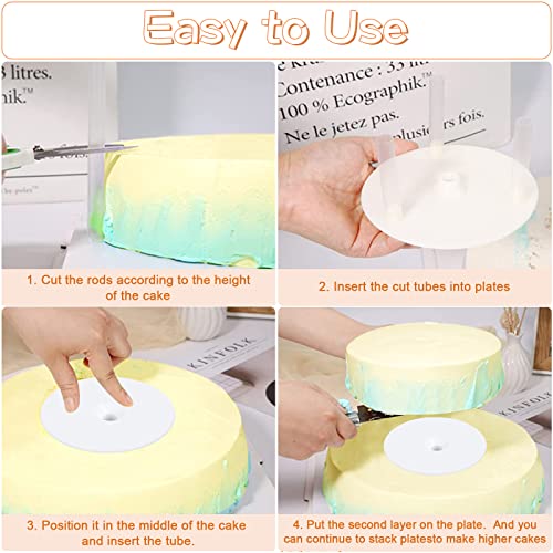 【2】Compresi 4 pezzi di piatti e 12 pezzi di cannucce per supportare la torta in modo costante.