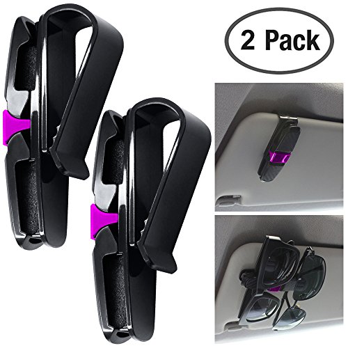 Supporti per Vetri da 2 Vetri per Visore Sun per Auto,FineGood Occhiali Sole Occhiali Sole Montati con Clip per Biglietti da Visita - Rosa