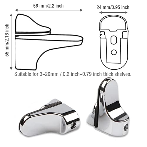 2 supporti in vetro per mensole, regolabili, in vetro cromato lucido, montaggio a parete, per mensole da 3 a 20 mm di spessore