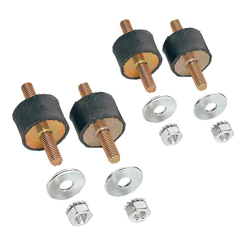 In gomma naturale con viti, rondelle e dadi. Portata: 80 Kg cad. Diametro: Ø 30 Altezza: 20 mm Confezione in sacchetto da 4 pezzi.