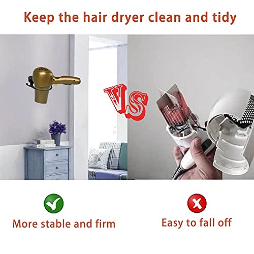 DIMENSIONI PERFETTE: Porta asciugacapelli con portacavo diametro interno: Circa 8 cm, supporto per asciugacapelli è compatibile con la maggior parte dei tipi e dimensioni di asciugacapelli
