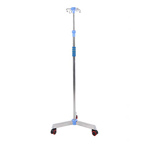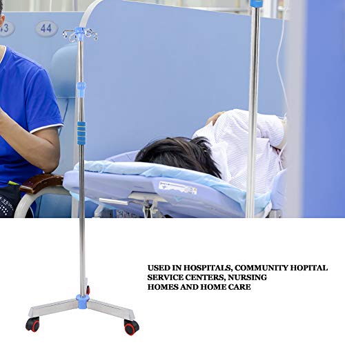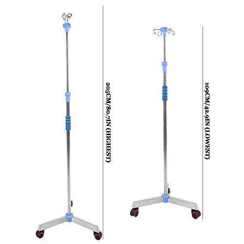 Supporto per Aste Portaflebo, ANGGREK Supporto per Flebo IV Regolabile in Acciaio Inossidabile Supporto per Infusione Rimovibile con 4 Ganci e 3 Ruote