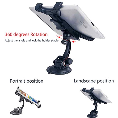 Supporto Auto per Tablet 7-10 pollici, UCMDA Universale Parabrezza Regolabile 360 Gradi di Rotazione con Ventosa per iPad air 2/mini, Samsung Galaxy Tab 3/4/pro, Nexus 7, Acer Iconia 10,Lenovo - Nero