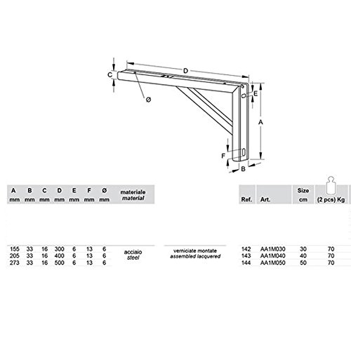 Supporto base reggi mensola rinforzata staffa reggimensola cm 40 bianca