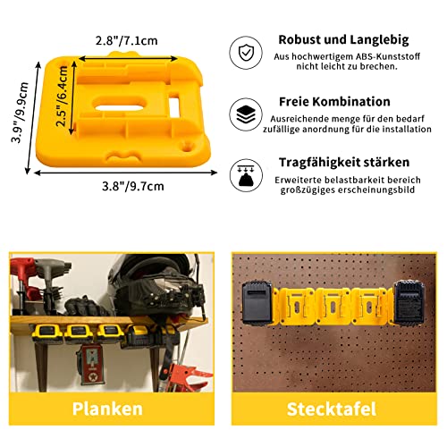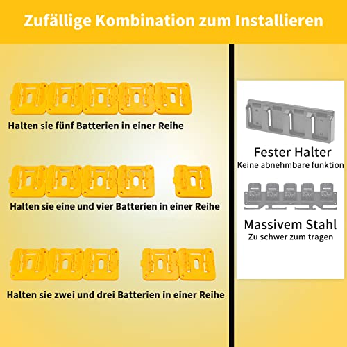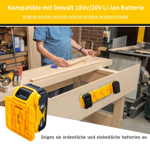 Applicazione: il supporto per batteria adatto per l'intera serie di batterie Dewalt da 20 V per il fissaggio a parete, banco da officina, garage, officina, veicolo da lavoro, sopra la testa.