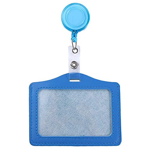 Supporto per biglietti da visita per infermiere, dottore, porta carte di credito, clip per badge in pelle PU, retrattile, colore: azzurro