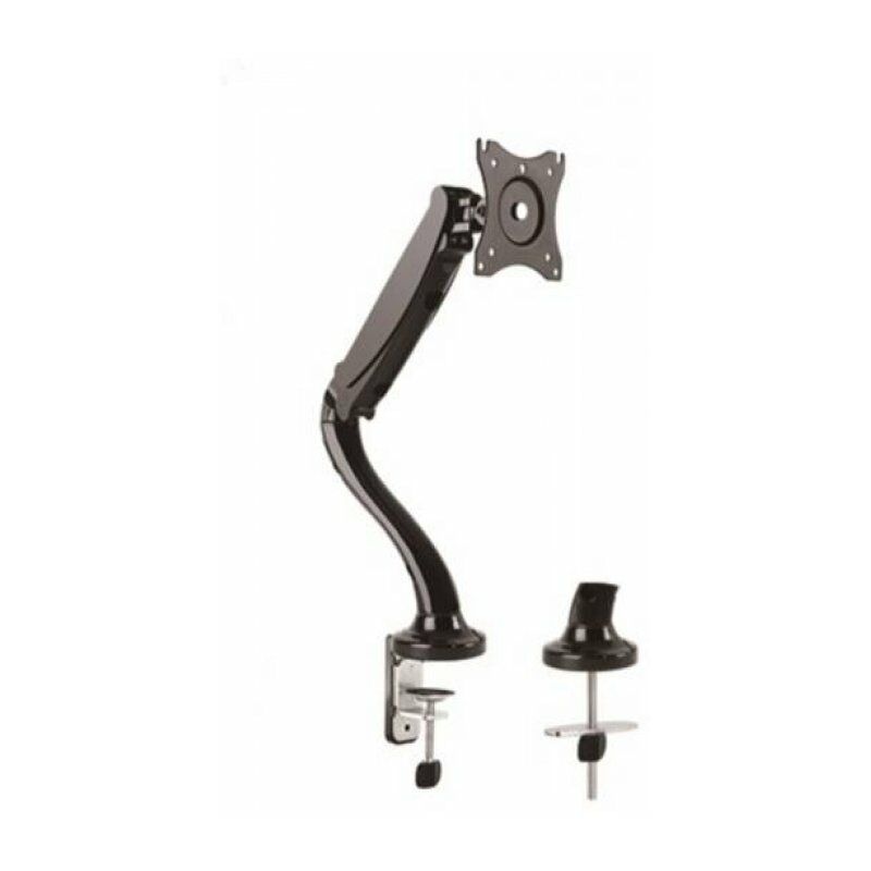 Braccio per supporto monitor LCD piatti a gas con controbilanciamento per rendere più agevole la regolazione nella posizione desiderata. In acciaio e alluminio, permette di mettere il monitor nella posizione desiderata e cambiarla agevolmente. Si muove in tutte le direzioni solo con un tocco. Per video 13-27" fino a 6 kg. I cavi si possono mettere all'interno del braccio per avere meno impedimenti. Per video Standard VESA 75X75 e 100x100. Regolazione in orizzontale del braccio (360°) in verticale (+/- 90°), rotazione del video 360°, regolazione orizzontale del monitor sul braccio 180°. Estensione massima del braccio 442mm. La ganascia permette l'installazione su tavoli 10-85mm. La tensione della molla di tenuta si può regolare per regolarla a seconda del peso che deve supportare il braccio. Misure 500X590X117mm. Supporta anche TV curve.