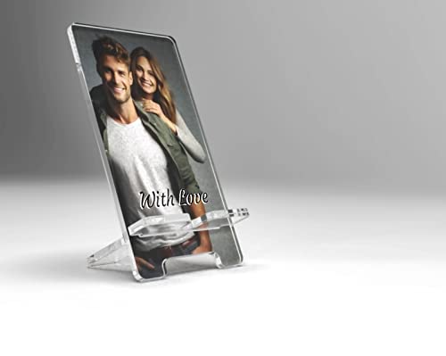 Supporto Cellulare da Tavolo Personalizzabile con Stampa UV in Acrilico Trasparente - Porta Cellulare Personalizzato con Logo e Testo - Dock Station Foro di Ricarica - Idea Regalo Compleanno Natale