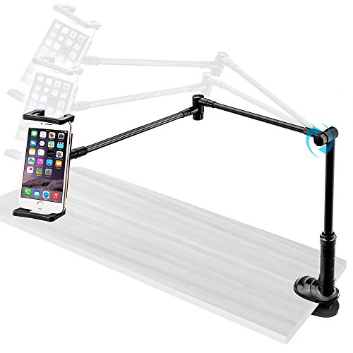 Supporto per Cellulari e Tablet, Foraco Flessibile e Regolabile 3 Braccio Pigra Metallo Supporto per 4-14 Pollici Telefon, iPhone, Android Smartphone, iPad e Tablet, Titolare da Cucina e Ufficio, Nero