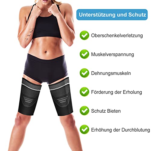 Supporto Coscia Fascia per Uomo e Donna Elastica Coscia Compressione Coscia con Silicone Antiscivolo, per Strappare Fibre Muscolari, Carico Muscolare, Sport, 2 Pezzi (nero, XL)