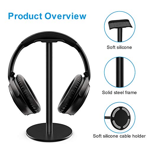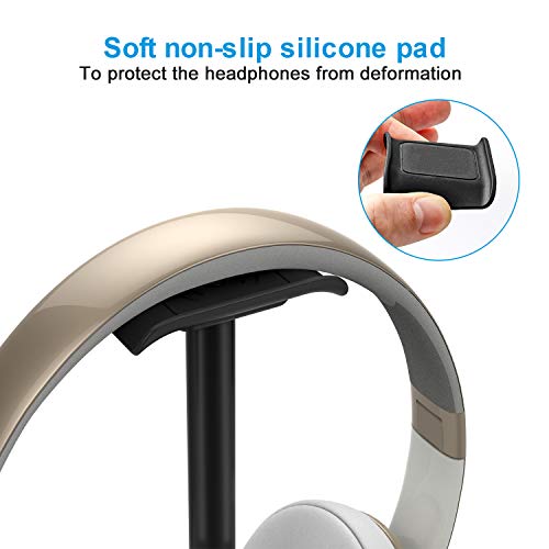 Supporto per cuffie in lega di alluminio, con supporto in metallo resistente, con silicone antiscivolo, per cuffie da gioco, per tutte le dimensioni (nero)