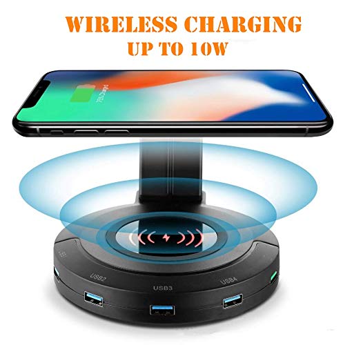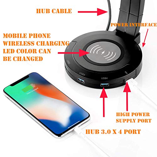 Supporto per Cuffie con Ricarica Wireless, ONEGenug Supporto per Cuffie da Gioco QI Ricarica fino a 10w, Hub USB con Stazione di Ricarica USB a 4 porte per iPhone / Android con indicatore LED