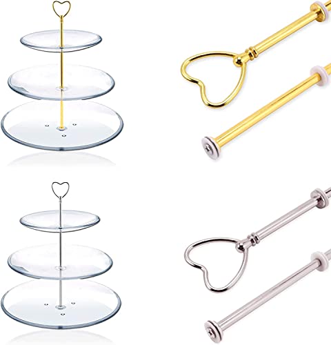 【Materiale del supporto per torta】 Il set di aste per supporto per torta è realizzato in lega di metallo-zinco, la superficie liscia è placcata oro/argento, bella e pratica. È un accessorio fatto a mano ideale per la realizzazione di alzate per torte.