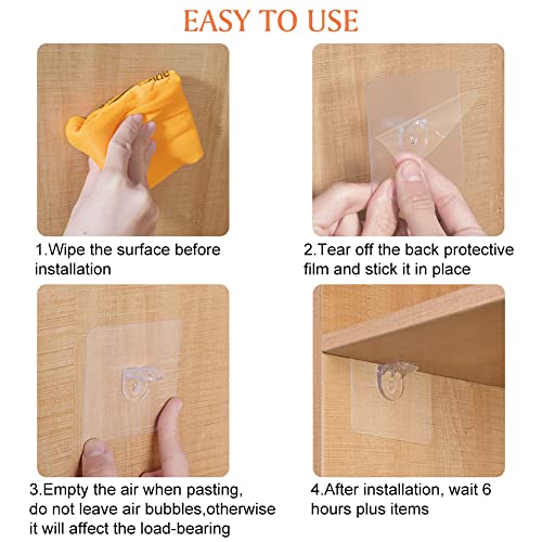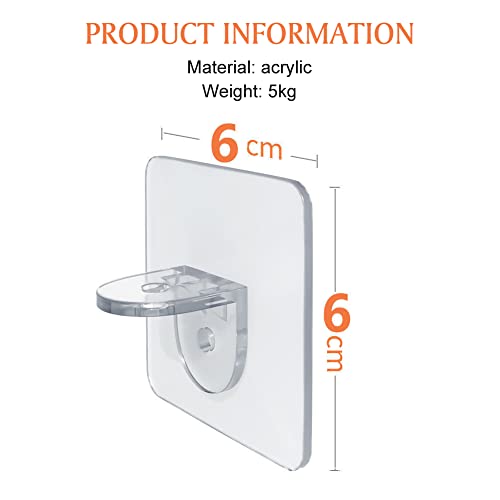 Staffa di Supporto Adesiva per Armadietto: questi perni per mensole misurano solo 6 x 6 cm (2,36 x 2,36 pollici). Riceverai 4 mensole adesive. Il colore trasparente può essere abbinato a quasi tutti i tuoi mobili. Quantità sufficienti possono soddisfare le vostre diverse esigenze.