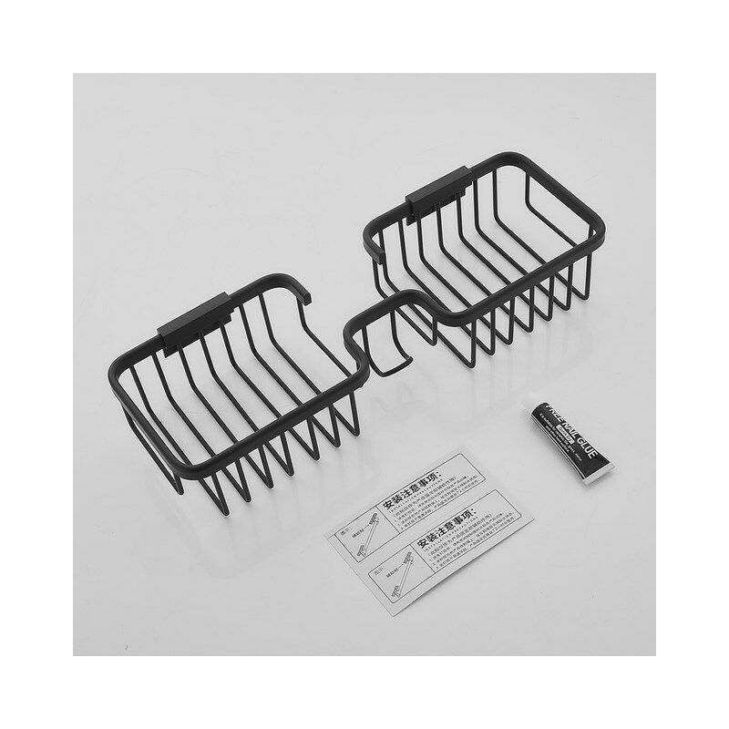 Supporto per doccia nero in alluminio senza ripiano per cestello perforatore doppio portaoggetti portaoggetti per bagno per porta doccia per Shampoo ganci singoli,Black