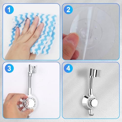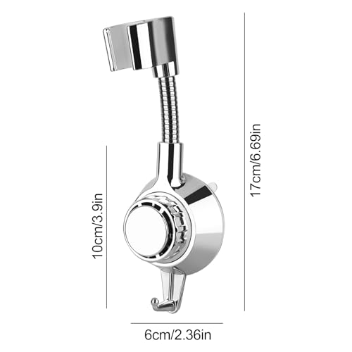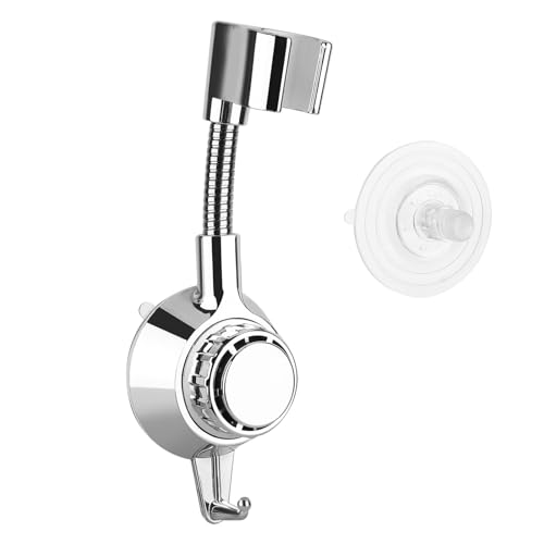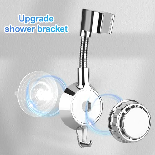 Supporto Doccia con Potente Ventosa, Supporto per Soffione Doccia Senza Foratura, Universale Supporti per Soffione Doccia Regolabile a 360° Argento