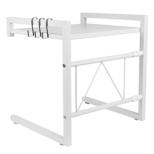 Supporto estensibile per forno a microonde a carico pesante, supporto per ripiano per forno a microonde ad altezza regolabile con 3 ganci sospesi, supporto a microonde(bianco, 40-65 cm, 1 pz)