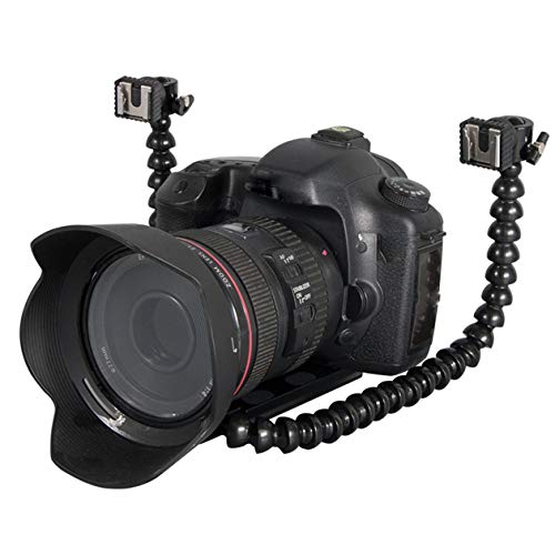 Supporto flessibile per doppio flash per fotocamera con doppio braccio Supporto per due slitte con staffa con testa a sfera per Speedlite DSLR Macro Shooting, nero