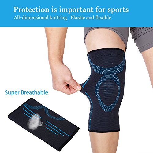 Supporto per ginocchio Supporto per compressione Gamba sportiva Supporto per ginocchio Protezione per ginocchio Ginocchiere per recupero di artrite e lesioni sportive(L-Black + Blue)