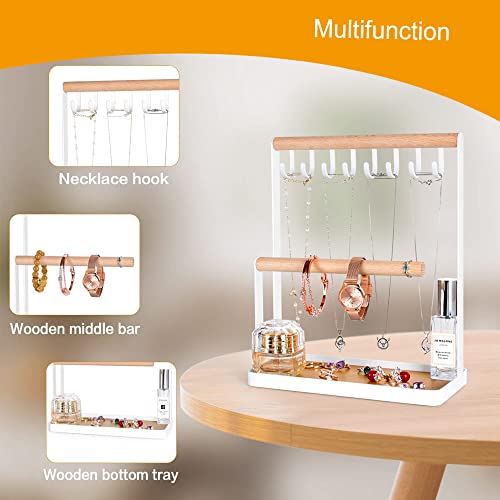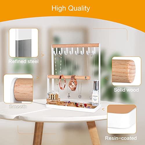 Supporto per gioielli, collana multi livello appeso anello in legno organizer porta orecchini, 8 ganci per riporre collane, bracciali, anelli e orologi sul tavolo da scrivania