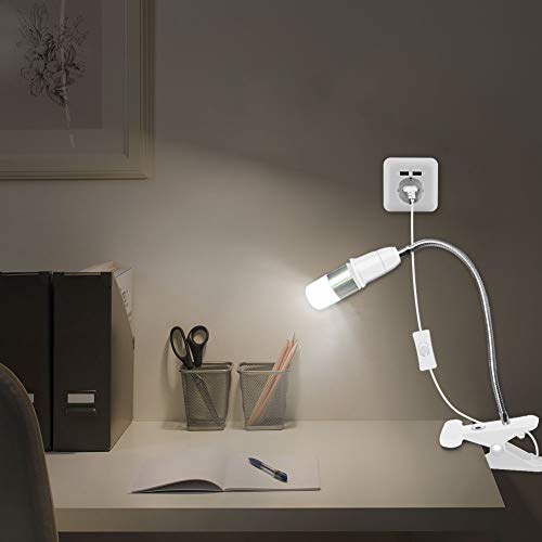 Supporto per lampada a LED E27, con morsetto, 2 pezzi, 4,5 m, morsetto collo di cigno cavo e interruttore da scrivania, piante, calore, lettura