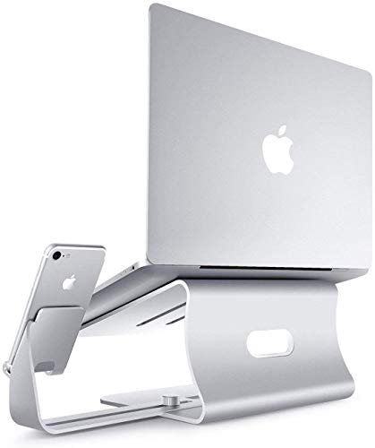 Supporto per laptop in alluminio e supporto per telefono regolabile in alluminio e magnesio Supporto desktop salvaspazio per tutti i modelli Apple MacBook, notebook e smartphone (104-Silver)