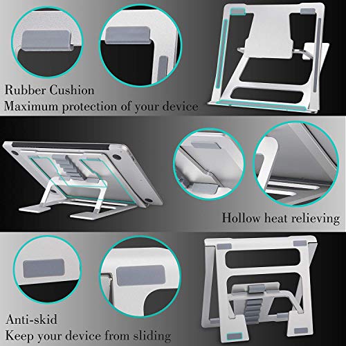 *FIDUCIA E ANTISCIVOLO: Realizzato in lega di alluminio, i materiali di prima qualità rendono il supporto dello stand più robusto. Il basso design del centro di gravità e i ganci mantengono stabile il supporto in sicurezza. I pad in gomma proteggono il tuo laptop e prevengono graffi indesiderati dal tuo laptop.