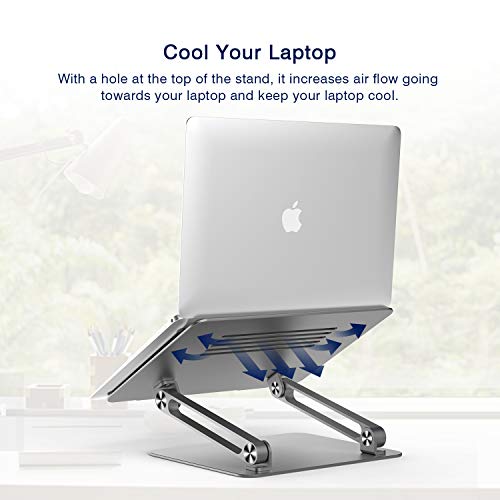 Funzione di ventilazione: realizzato in materiale di alluminio di alta qualità, il supporto per notebook può assorbire e scaricare il calore facilmente e rapidamente. C'è un foro nel supporto e faciliterà l'uso della ventilazione incrociata per raffreddare il tuo laptop.