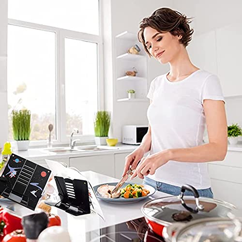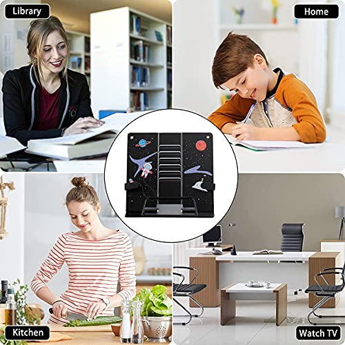 Supporto per Libri per Bambini Supporto Lettura in Metallo, Supporto per Lettura Pieghevole in Metallo, Regolabile Metallo Book Stand per Libri, con Motivo a Razzo Spaziale, Nero