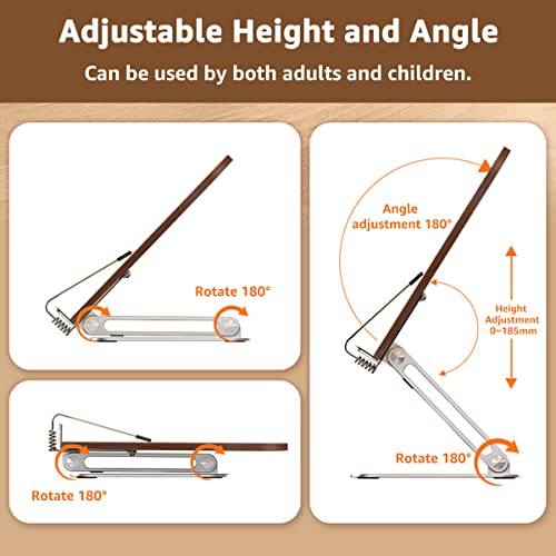 ♛【Altezza e Angolo Regolabili】L'angolazione del nostro ergonomico book stand può ruotare 180 °, Intervallo regolabile in altezza 0-18,5 cm, è possibile regolare l'angolazione e l'altezza del book holder stand per rendere la lettura confortevole in base alle proprie esigenze. Book holder stand