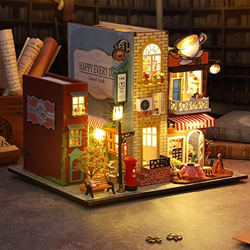 Supporto per libri in legno 3D Puzzle fai da te casa delle bambole in legno Bookends Book Nook Model Building Kit adolescenti e adulti per costruire-Creativity Regalo per compleanni Halloween (musica)