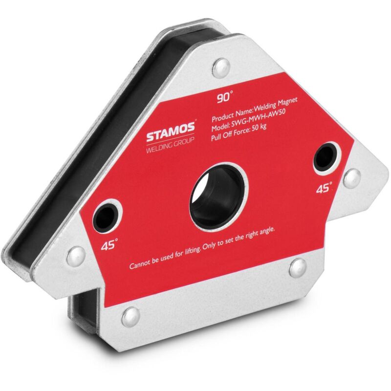 Saldatura precisa con il supporto magnetico di Stamos Welding Group di marca Stamos Welding Group ✅ Modello: SWG-MWH-AW50 ✅ Articolo: 10021300 ⬇️ Caratteristiche principali Versatile: mantiene saldo il pezzo in lavorazione con un angolo di 45/90/135°. Forte: collega metalli con forza di tenuta fino a 50 kg. Durevole: robusta struttura in acciaio rinforzata con rivettature. Manutenzione semplice: l'angolo può essere rimosso e pulito semplicemente con un panno. Comodo: facilita il lavoro di saldatura e lascia le mani libere. ⬇️ Dettagli tecnici Angoli [°] 45/90/135 Forza di attrazione [kg] 50 MMA No TIG No Plasma No Manuale Sì MIG/MAG No Carrello per saldatrice No Guanti da saldatore No Caschi da saldatore No Saldatrice multiprocesso No ⬇️ Descrizione del prodotto Il supporto magnetico per saldatura SWG-MWH-L di Stamos Welding Group è stato progetto apposta per l'utilizzo con elementi metallici e permette un collegamento saldo tra i singoli componenti. Il robusto supporto