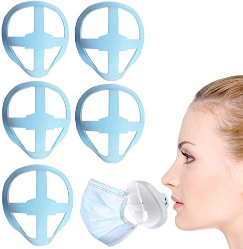 Supporto per maschera 3D per protezione rossetto, supporto interno in silicone lavabile, riutilizzabile, migliora lo spazio di respirazione e aiuta a respirare senza intoppi (5 pezzi, colore blu)