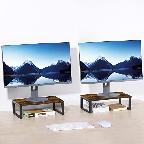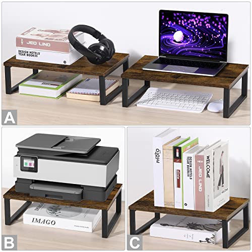 Supporto per Monitor Rialzo per schermi, Supporto in Legno e Metallo per Computer Laptop Stampante, Supporto Monitor Scrivania per Casa o Ufficio (Confezione da 2)