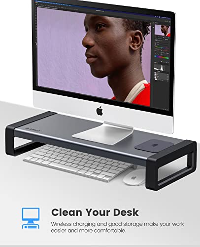 Compatibile con la ricarica wireless: il supporto per monitor viene utilizzato in combinazione con il caricabatterie wireless, basta posizionare il vostro iPhone o un altro telefono cellulare certificato wireless sulla piastra di ricarica e la ricarica inizia automaticamente.