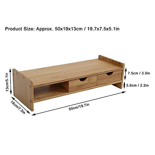 Supporto per Monitor da Scrivania, Rialzo per Monitor da Scrivania con cassetto, Organizzatore di Archiviazione Desktop, in bambù, 50x19x13 cm(Legno Naturale)