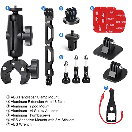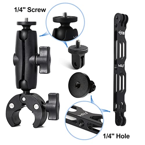 HSU Supporto a morsetto con supporto per treppiede e braccio di prolunga per GoPro, manubrio da moto a 360° e set di montaggio per casco per altre action camera