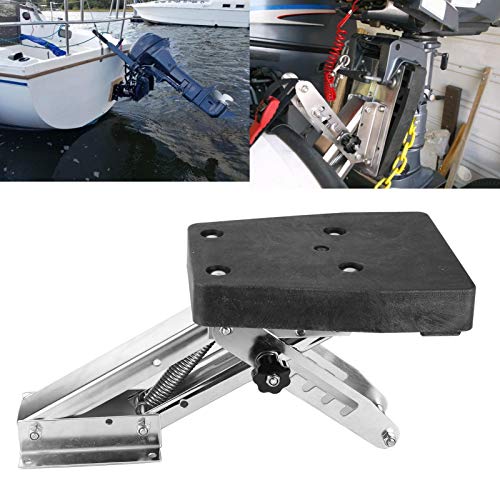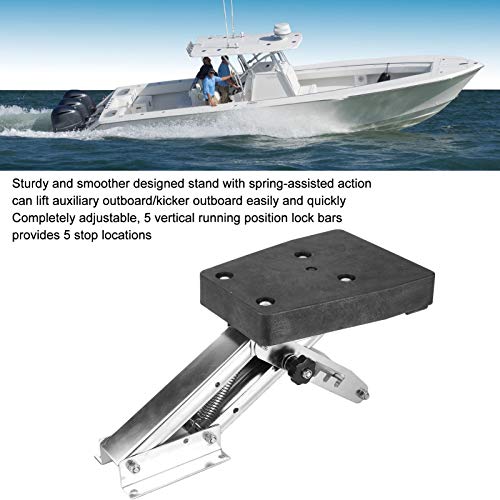 DESIGN DELLA STAFFA ROBUSTO E STABILE: la staffa del motore della barca adotta un design della staffa robusto e stabile con funzione di assistenza a molla, che può aumentare facilmente e rapidamente l'angolo ausiliario fuoribordo/fuoribordo. Risparmia tempo e fatica, ti offre la massima comodità.