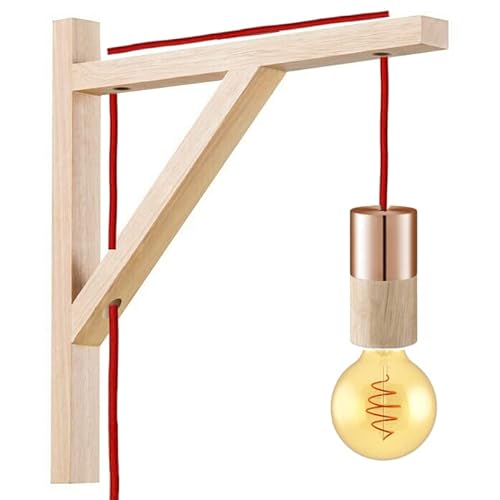 Supporto a Muro in Legno per lampade a Sospensione con cavo elettrico tessuto. (Supporto in legno naturale)