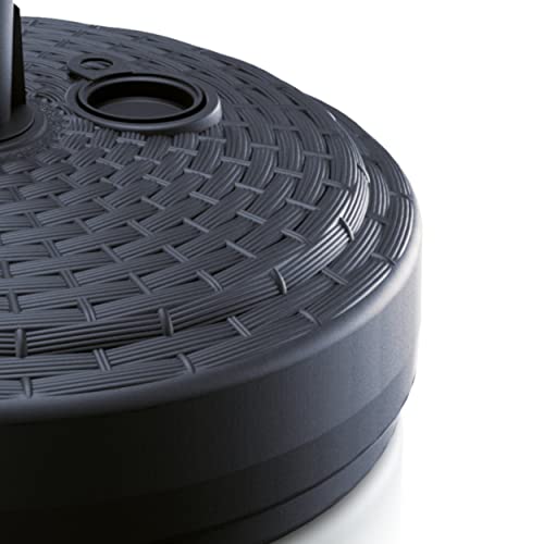 Supporto per ombrellone, colore antracite, in plastica, forma rotonda, per giardino, terrazza, spiaggia, in rattan, riempito con sabbia, acqua o ghiaia, bandiera